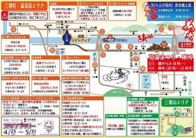 「日本遺産花火」(4月25日)と「花湯まつり」(5月3日・4日)をはじめイベントや特典など、楽しいことが盛りだくさんの10日間です。