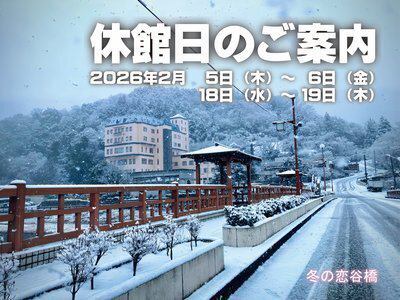 さて、2026年2月に予定しております「休館日」につきまして、下記の通りご案内差し上げますので、予めご確認くださいますよう、よろしくお願い申し上げます。